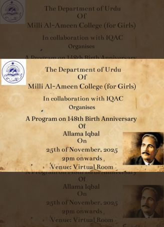 Milli Al Ameen College is committed to be an instrument of positive change in women's education for the benefit of society. In the pursuit of this mission the college undertakes :- To impart balanced education and all round development of the students, To motivate , guide and to facilitate excellence in various fields of education, To create a positive atmosphere, to facilitate creative skills, enhancing opportunities for further studies .... Read More
