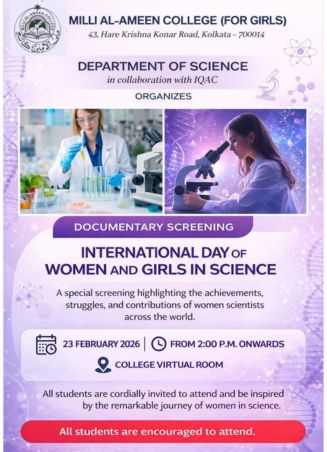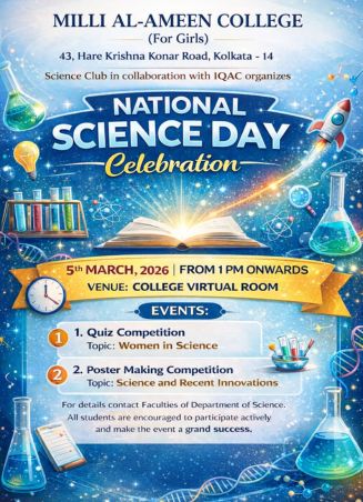The establishment of Milli Al-Ameen College (For Girls) by the Milli Educational Organization (Registered under the West Bengal Societies Registration Act, 1961) fulfilled the long-cherished desire of the Muslims of Kolkata to have a degree college for girls belonging to educationally backward sections of the society in general. The land on which this college stands tall, was obtained from the pioneer physician and scientist, Dr. Upendranath Brahmachari, who is renowned for having invented ......Read More